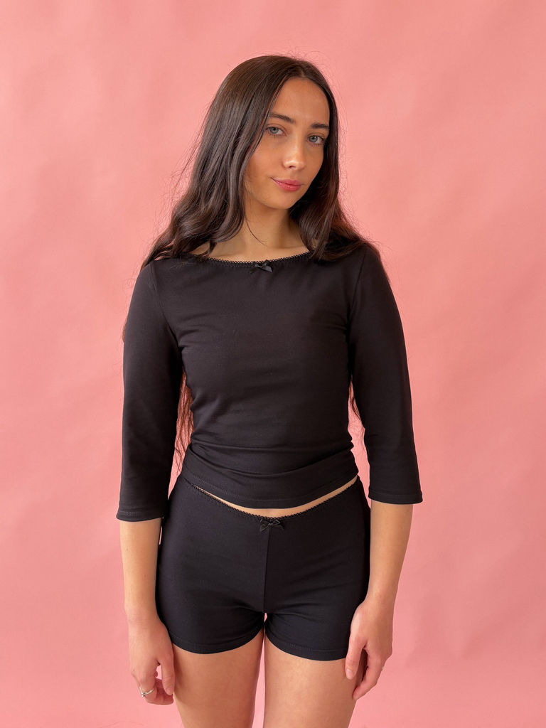 Jane 3/4 Sleeve Top - Black - Ready to ship