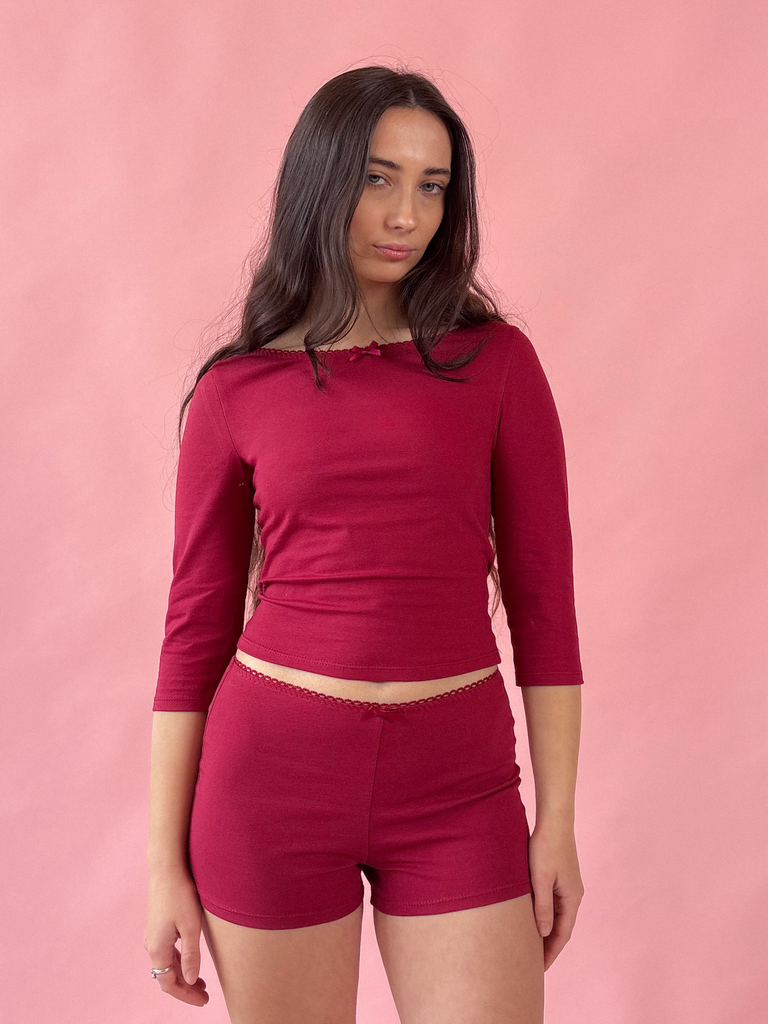 Jane 3/4 Sleeve Top - Wine - Ready to ship