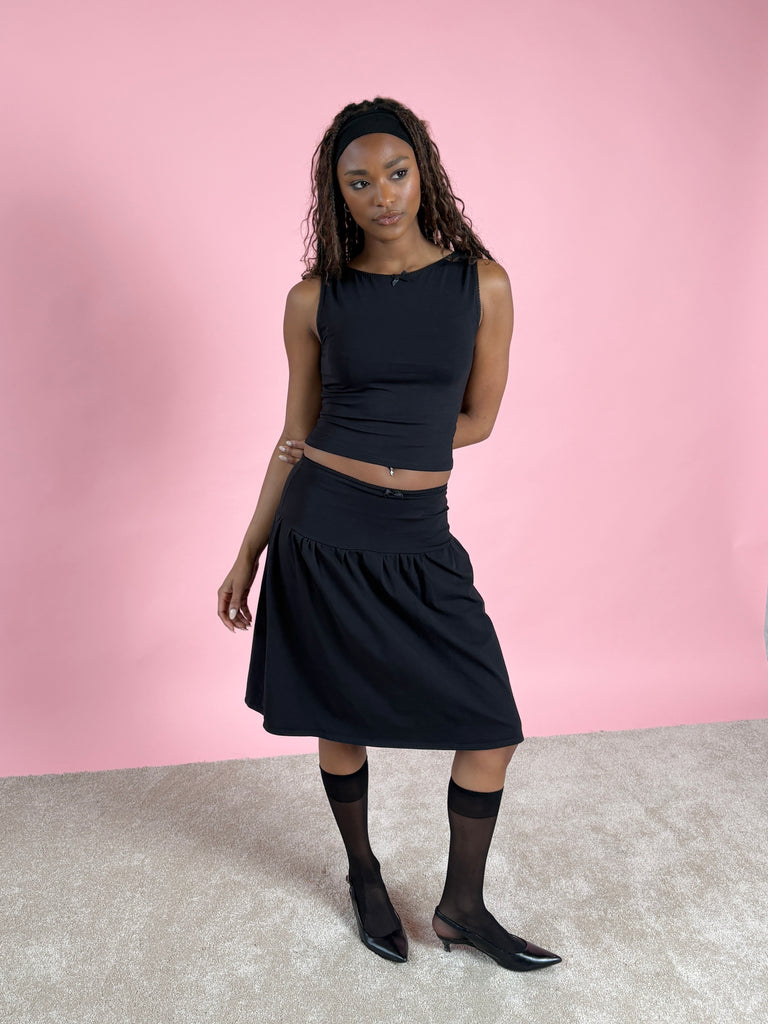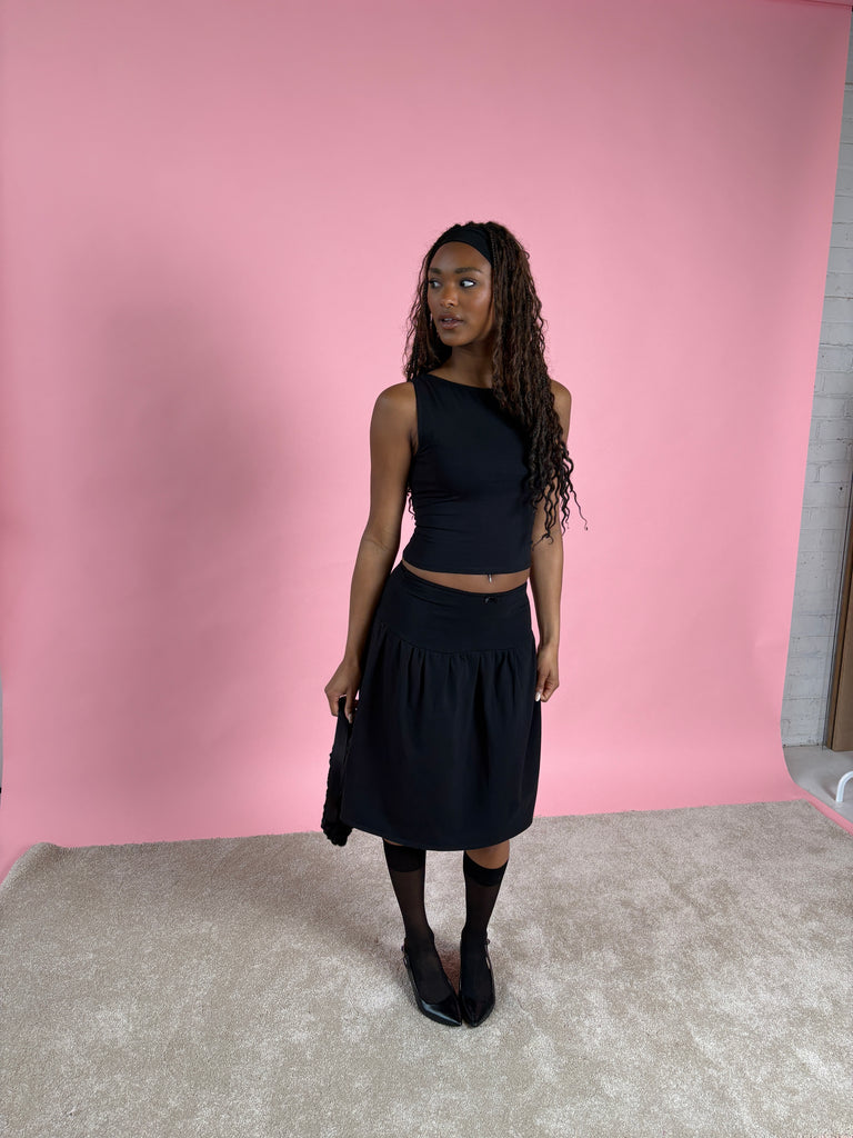 Midi skirt with a gathered tier, in your choice of colour and trims. The perfect companion to your Evie tops!