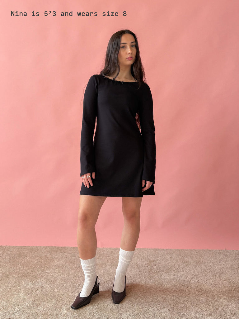 Brigitte Long Sleeve Mini Dress - Black - Ready to ship