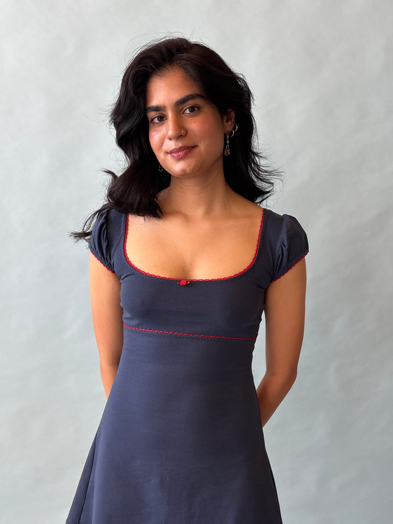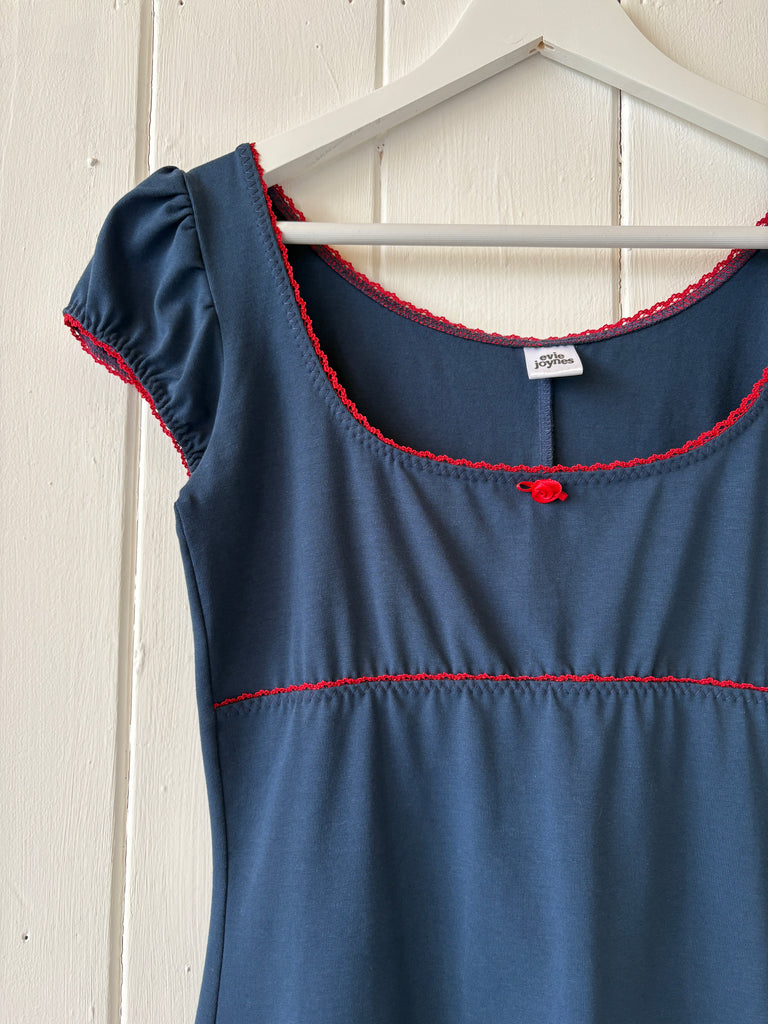Kiki Cap Sleeve Mini Dress - Indigo Blue/Red - Ready to ship