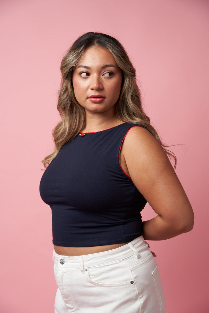 Audrey High Neck Tank Top - Navy/Red - Ready to ship