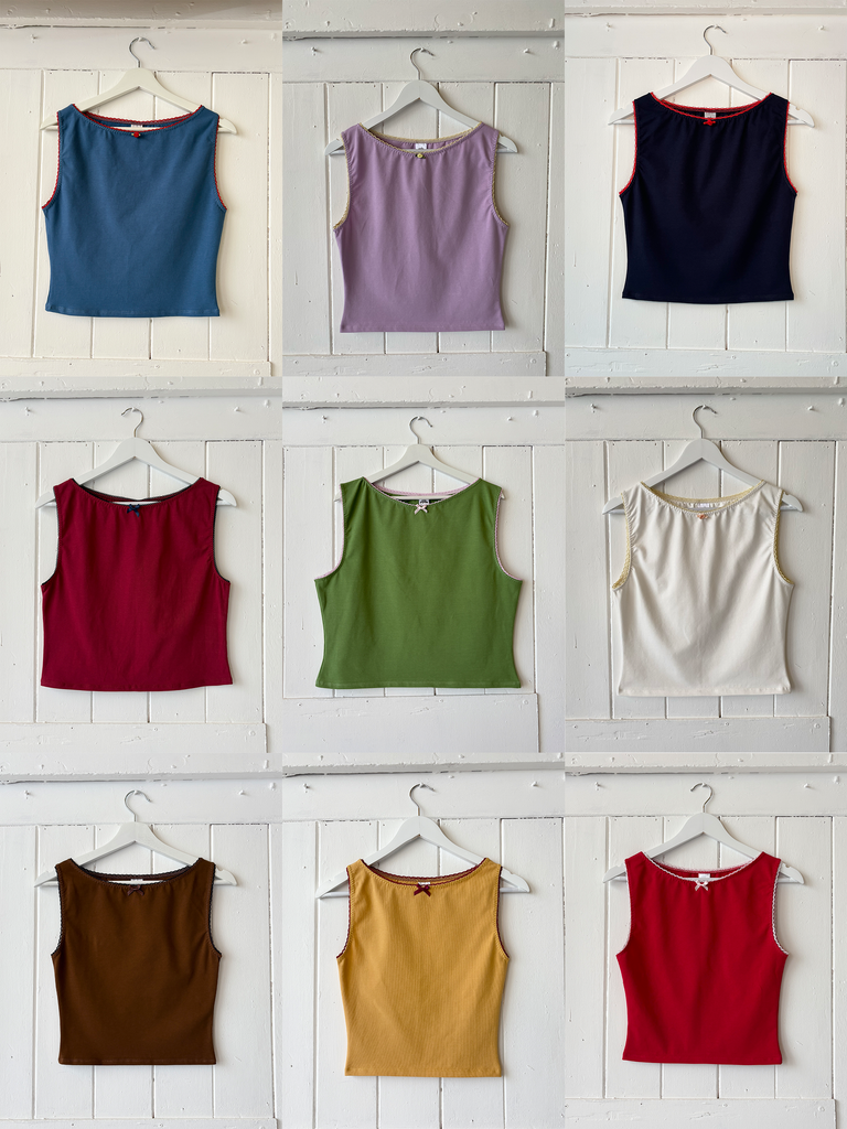 A super cute and versatile everyday top, an essential for your capsule wardrobe! With a boatneck, fitted bodice and slightly cropped silhouette. Choose your fave colour and trims and let me create your new fave top! Made-to-order, ships in approx 3 weeks 🖤