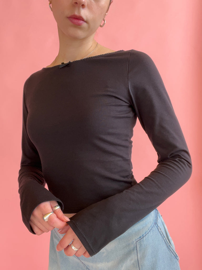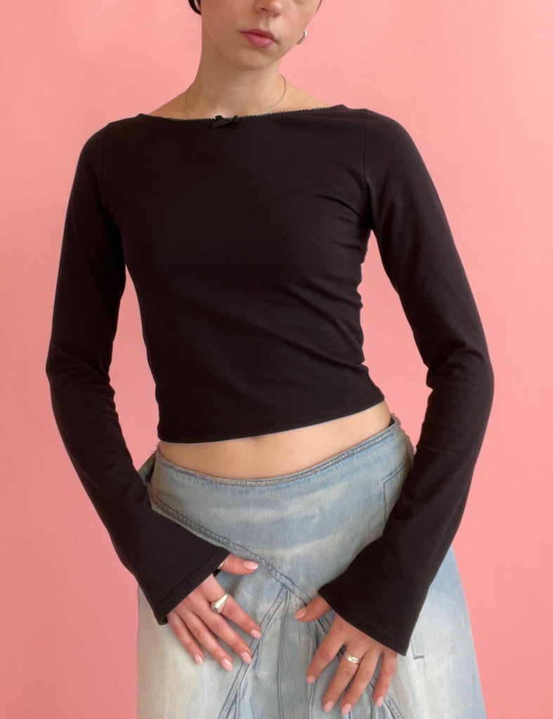 A chic, boatneck top in a slightly cropped silhouette with long sleeves. A true wardrobe staple! Made to order, ships in approx 3 weeks.