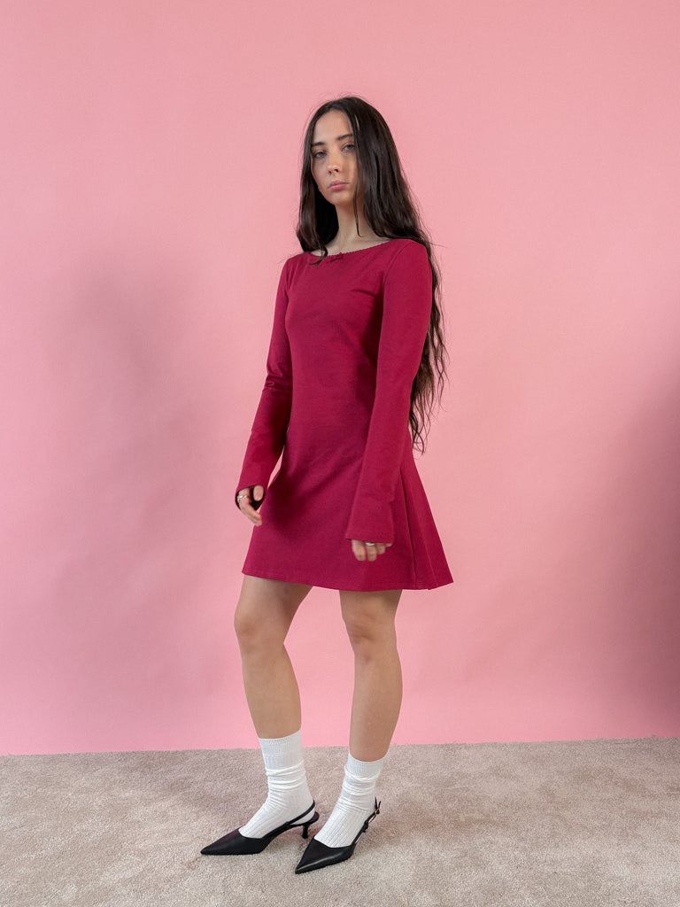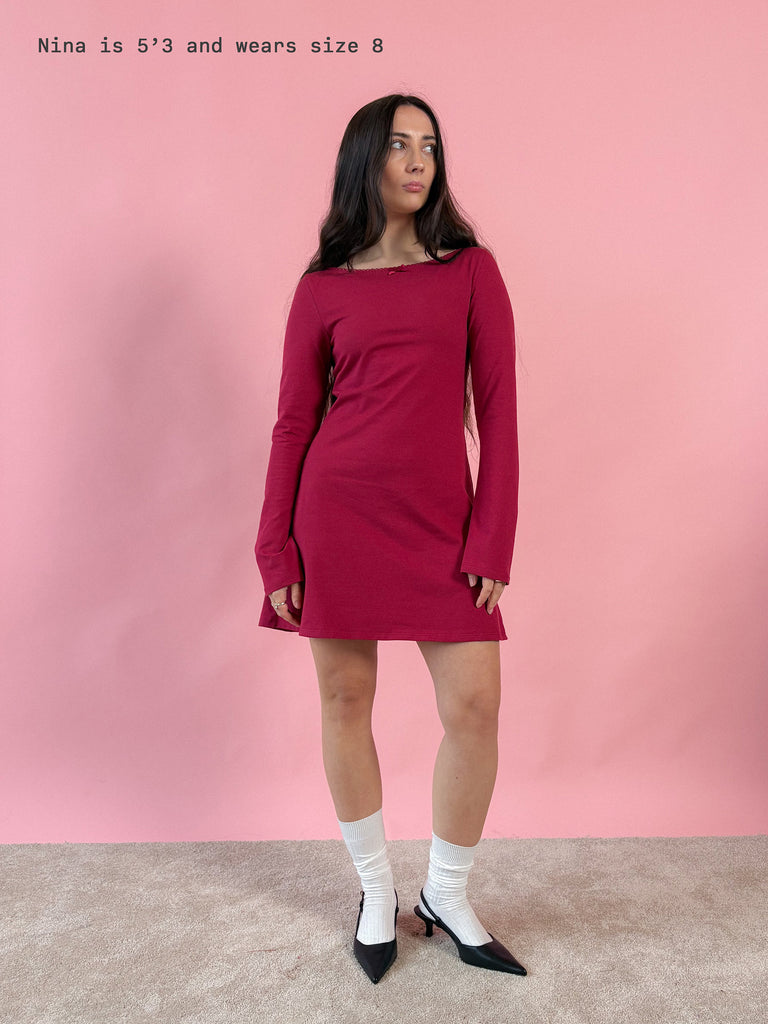 Brigitte Long Sleeve Mini Dress - Wine - Ready to ship