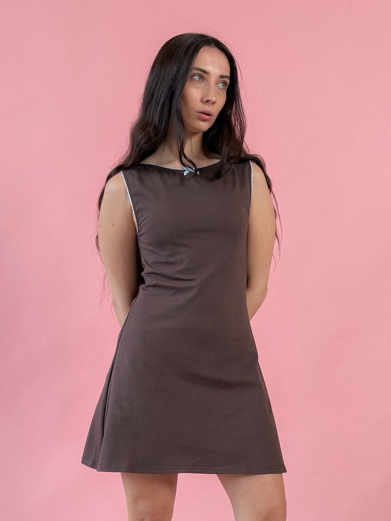 Meredith Sleeveless Mini Dress - Chocolate Brown/Baby Blue - Ready to ship