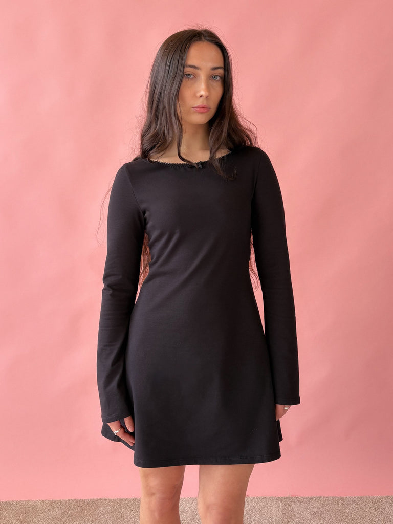 Brigitte Long Sleeve Mini Dress - Black - Ready to ship
