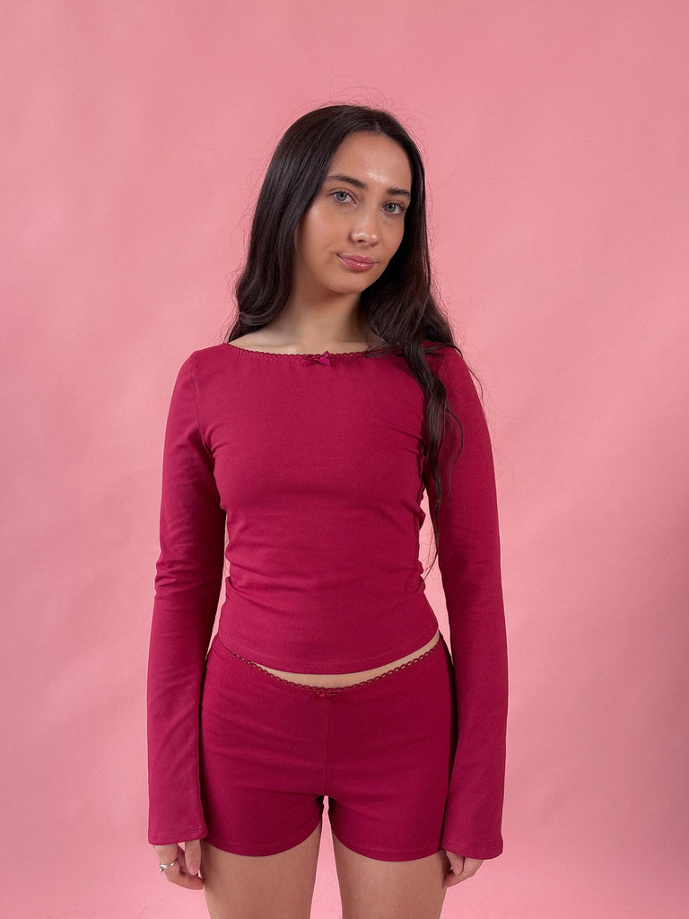 Jennifer Long Sleeve Top - Wine - Ready to ship