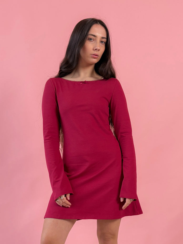 Brigitte Long Sleeve Mini Dress - Wine - Ready to ship